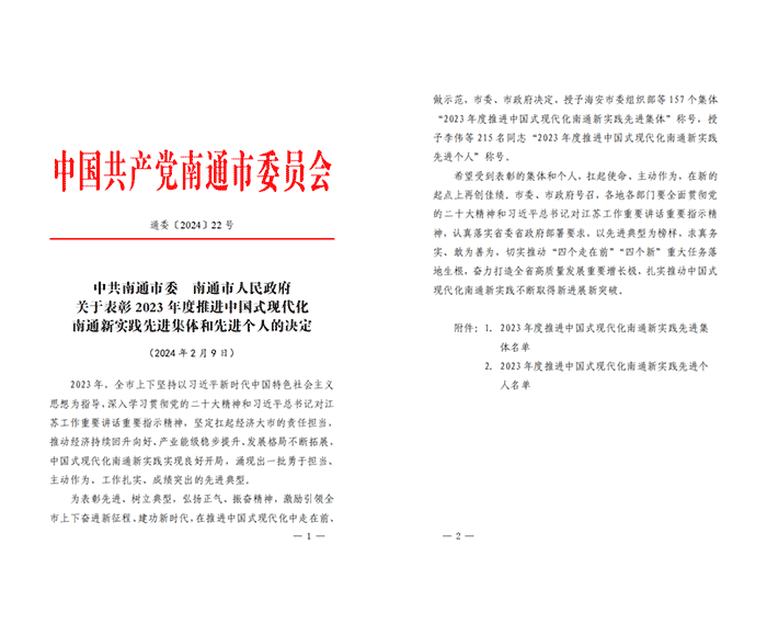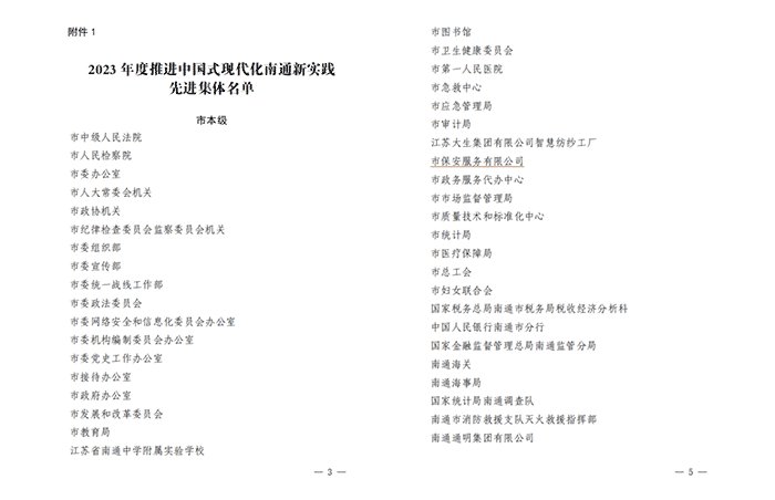 喜報(bào)——南通保安公司榮獲“2023年度推進(jìn)中國式現(xiàn)代化南通新實(shí)踐先進(jìn)集體”稱號