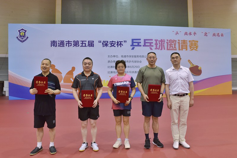 6月29日,南通市第五屆“保安杯”乒乓球邀請(qǐng)賽在開(kāi)沙島中國(guó)乒乓球通州訓(xùn)練基地成功舉辦。賽事由南通市保安服務(wù)有限公司主辦,南通市乒協(xié)承辦。市國(guó)資委副主任、二級(jí)調(diào)研員于海華,市乒協(xié)主席侯軍,城建集團(tuán)副總經(jīng)理董新平,保安公司董事長(zhǎng)方俊,市乒協(xié)副主席、秘書(shū)長(zhǎng)張進(jìn)出席開(kāi)幕式。