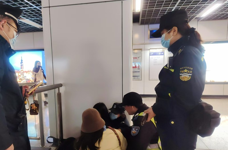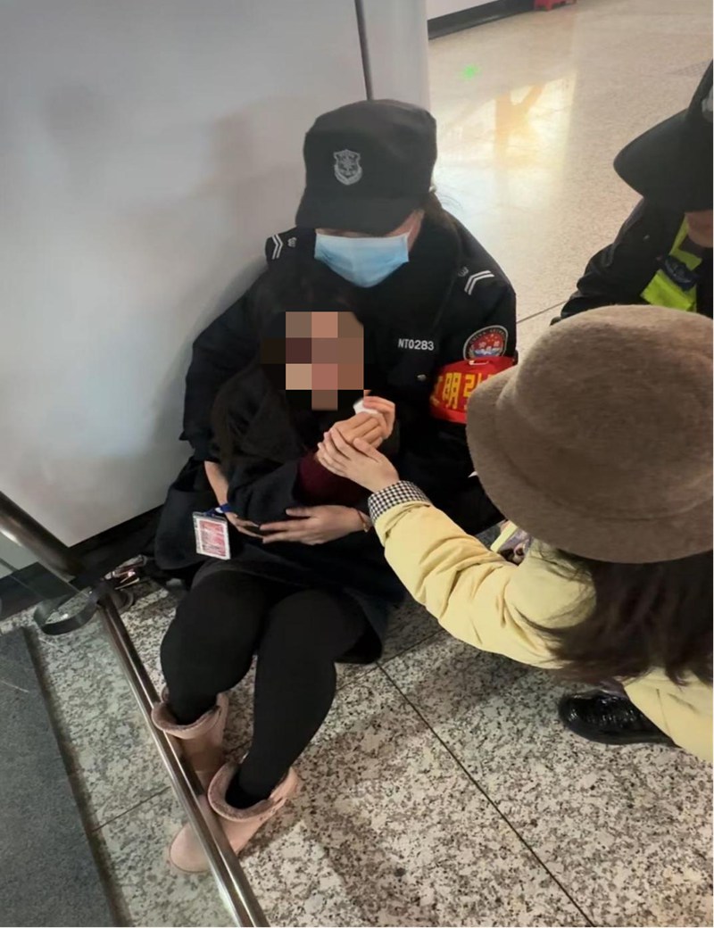 2024年12月11日17:40,南通保安公司派駐南京地鐵運營安防科技有限公司安檢員張雯和同事一起對進站乘客進行安檢作業(yè),此時發(fā)現(xiàn)一名出站年輕女乘客邊打電話邊哭泣,情緒很不穩(wěn)定。細心的張雯邊工作邊留意女子動態(tài),女子在出站閘機口停留,哭泣5分鐘左右后情緒激動,突然將腳跨上欄桿,張雯感覺事態(tài)嚴重,沖過去將女子從護欄上抱下來。護欄下面就是高度近5米的地鐵站臺,站臺上有很多候車乘客,女子如若跳下,后果將不堪設想。