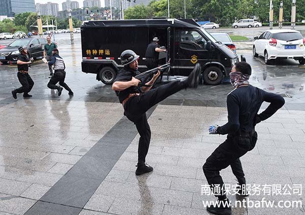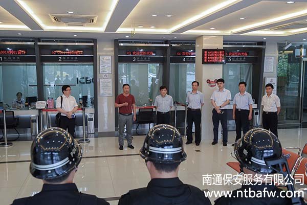 6月24日下午15:30,南通市保安服務(wù)有限公司押運(yùn)分公司在工商銀行開(kāi)6月24日下午15:30,南通市保安服務(wù)有限公司押運(yùn)分公司在工商銀行開(kāi)發(fā)區(qū)星湖支行進(jìn)行押運(yùn)突發(fā)事件應(yīng)急處置演練。南通城建集團(tuán)副董事長(zhǎng)姚曉明,工行內(nèi)控合規(guī)部(安全保衛(wèi))總經(jīng)理王大勇、副總經(jīng)理茅建平等領(lǐng)導(dǎo)在公司領(lǐng)導(dǎo)的陪同下到現(xiàn)場(chǎng)觀摩。